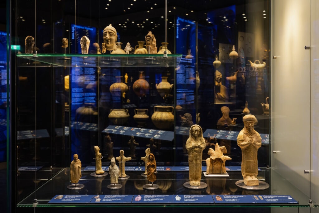 The exhibition on the 3rd floor of the Museum of Cycladic Art presents the artistic production of ancient Cyprus, a culture shaped through continuous cultural interactions. The objects in the collection reveal an art characterized by a wide range of forms, materials, and techniques, reflecting the island’s complex identity over time.